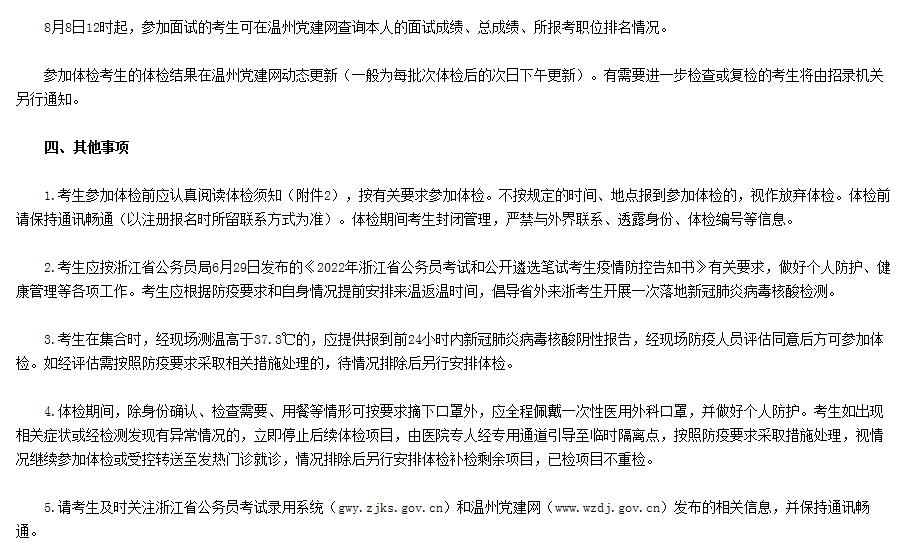 2022年浙江溫州市龍灣區(qū)公務(wù)員考試體檢事項(xiàng)通告