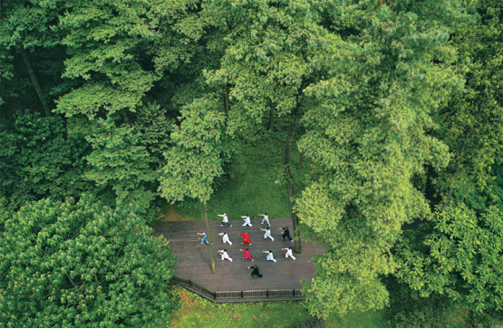 2022年以來,貴州省貴陽市以長坡嶺國家級森林公園為試點,建設(shè)貴州首個“林長制”主題公園,開展習近平生態(tài)文明思想、林長制政策、森林資源保護發(fā)展政策等宣傳,促進形成全社會愛林、護林、興林的良好氛圍。圖為2022年7月13日,市民在長坡嶺國家級森林公園里健身(無人機照片)。新華社記者楊文斌/攝