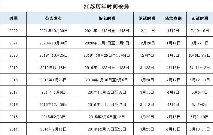 附歷年江蘇公務(wù)員考試時間安排:
