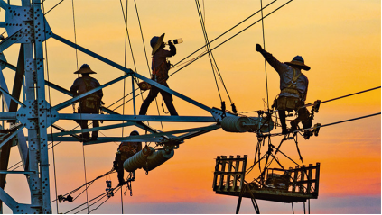 提高人民生活品質(zhì)是暢通國內(nèi)大循環(huán)的出發(fā)點和落腳點,也是國內(nèi)國際雙循環(huán)相互促進的重要聯(lián)結(jié)點。圖為2022年8月18日,在江蘇省鎮(zhèn)江市220千伏天王至江寧牽引站線路工程現(xiàn)場,江蘇省送變電有限公司施工人員在高溫酷暑下加緊建設(shè),全力保障企業(yè)生產(chǎn)、居民生活用電需求。中新社發(fā)史俊/攝