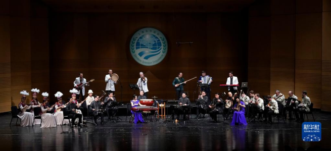參演藝術(shù)家演奏中國(guó)民樂(lè)《喜洋洋》(2018年5月30日攝)。當(dāng)日,上海合作組織成員國(guó)藝術(shù)節(jié)在北京保利劇院開(kāi)幕。新華社記者沈伯韓攝