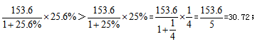 【答案】C【解析】材料已知“新簽對(duì)外承包工程合同額153.6億美元,同比增長(zhǎng)25.6%”,問(wèn)題求增長(zhǎng)量;列式為: