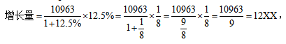 例1:2010年上半年成品油表觀消費(fèi)量10963萬(wàn)噸,同比增長(zhǎng)12.5%。2010年上半年,全國(guó)成品油表觀消費(fèi)量同比增加了約多少萬(wàn)噸?( )