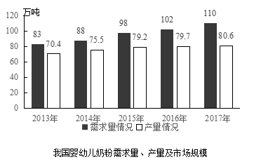 若保持2014-2017年的年均增長量不變,預(yù)計到2022年我國嬰幼兒奶粉需求量將達到多少萬噸?( )