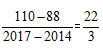 【答案】A【解析】2014年需求量為88萬噸,2017年需求量為110萬噸,由年均增長量的公式可得2014-2017年我國嬰幼兒奶粉需求量的年均增長量為