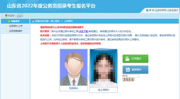 若考生為首次進入系統(tǒng),需上傳照片,頁面如下:
