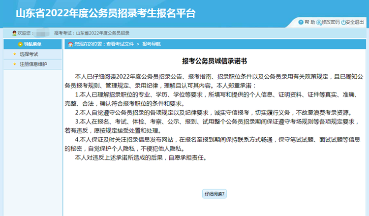 點擊【接受】按鈕,進入查看報考公務員誠信承諾書頁面: