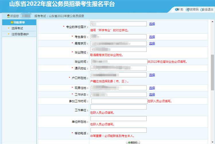 注:考區(qū)變更后,需重新填寫信息。