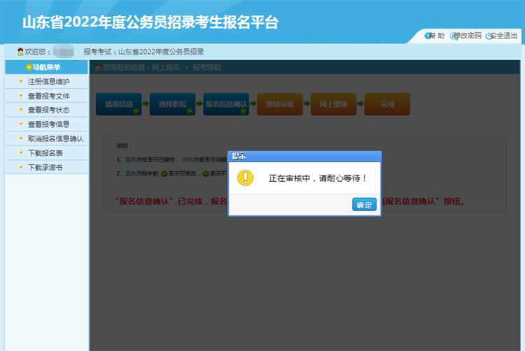 注:未審核的用戶,可通過左側(cè)菜單的【取消報名信息確認】功能,取消信息確認,重新選擇職位。