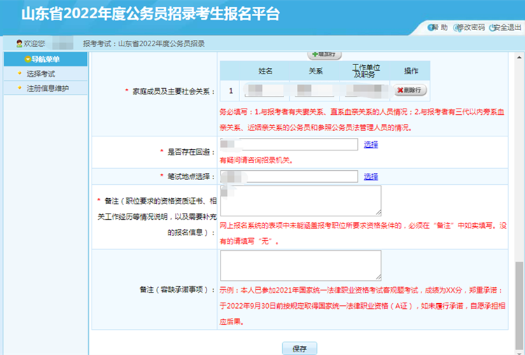 根據(jù)頁面提示,填寫個人的報考信息后,點擊【保存】按鈕,提示保存成功,可跳轉(zhuǎn)到報考導航頁面。