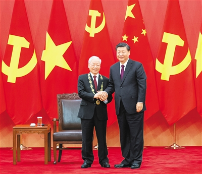 習近平指出,中越是山水相連、唇齒相依的好鄰居、好朋友,是志同道合、命運與共的好同志、好伙伴,是致力于人類和平與進步事業(yè)的命運共同體。在兩國推進社會主義現(xiàn)代化建設征程上,中國共產(chǎn)黨愿同以阮富仲總書記為首的越南共產(chǎn)黨一道,傳承好毛澤東、胡志明等兩黨兩國老一輩領導人親手締造和精心培育的傳統(tǒng)友誼,共同引領中越關(guān)系取得更大發(fā)展。