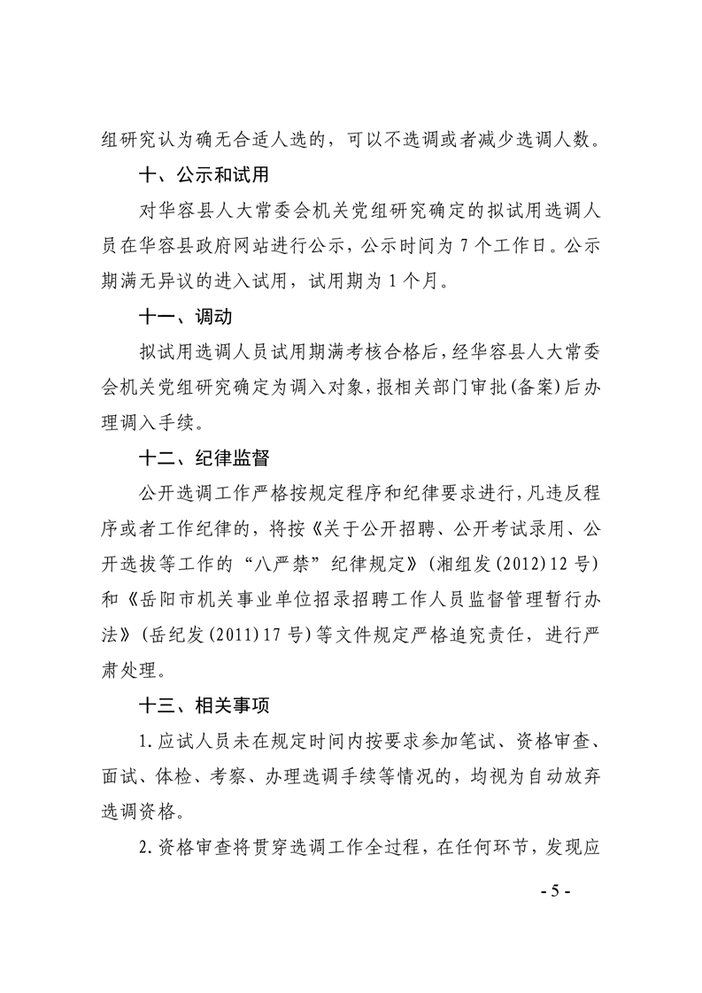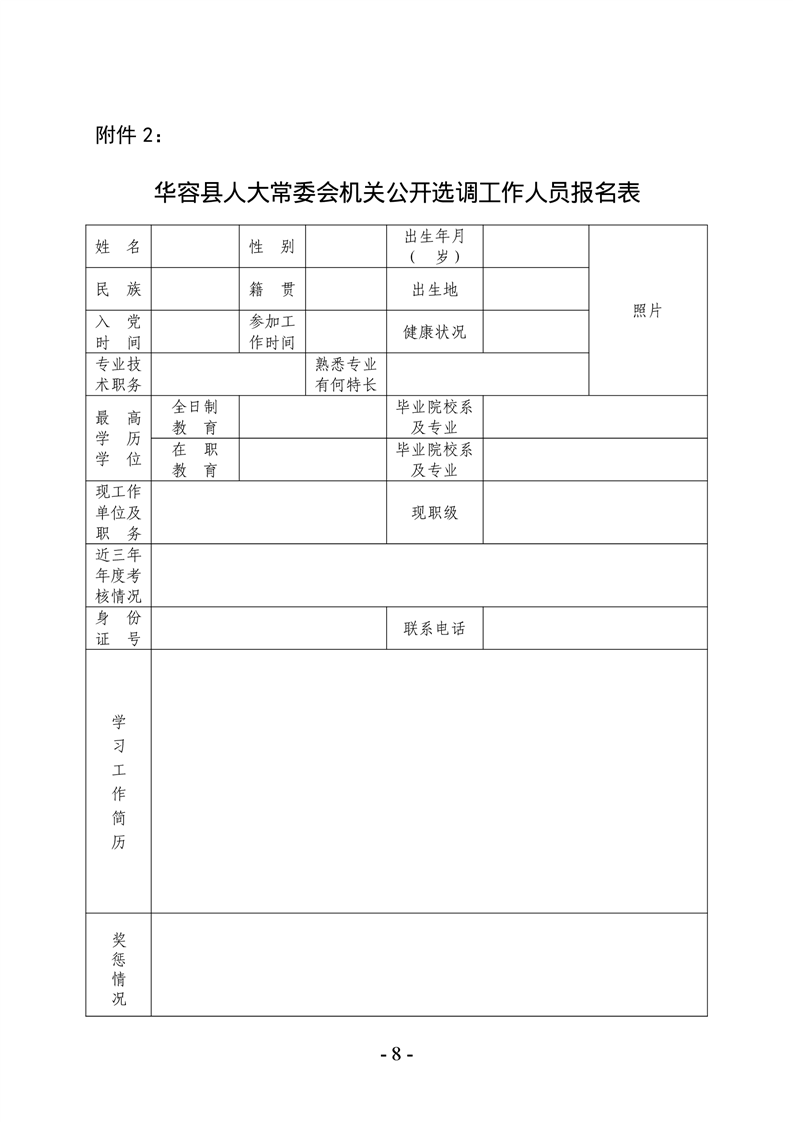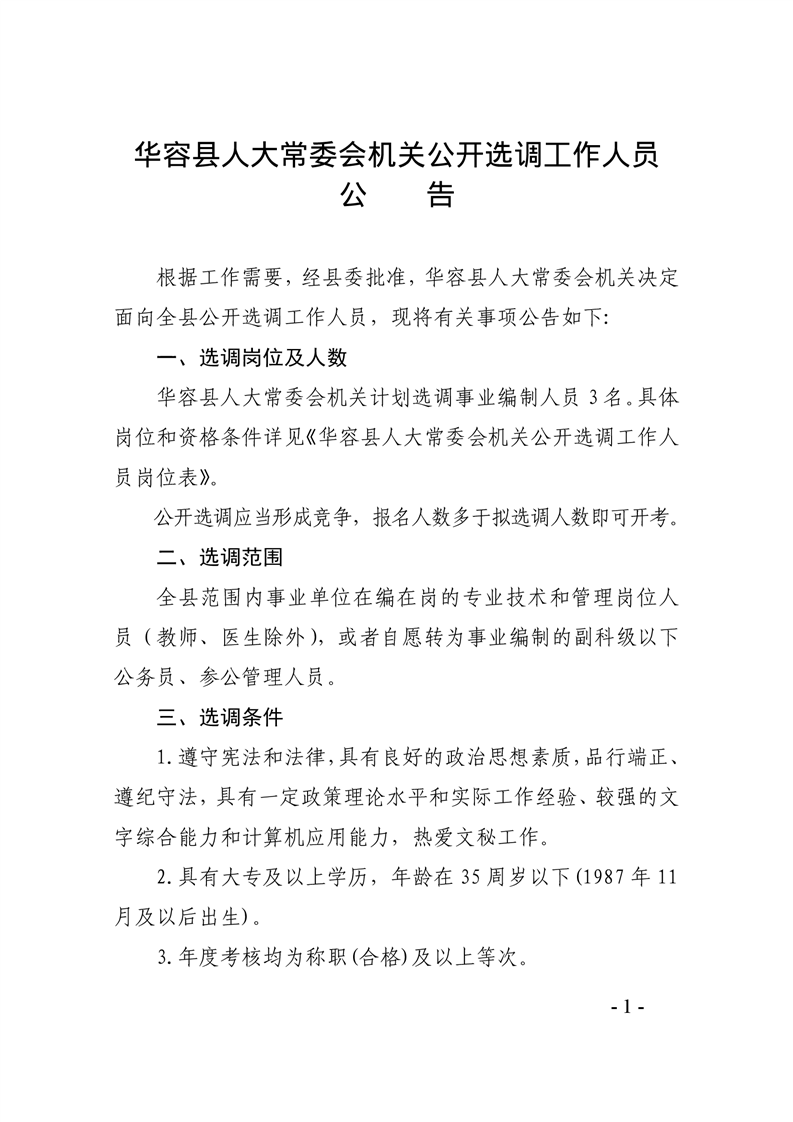 華容縣人大常委會機關(guān)公開選調(diào)工作人員公告