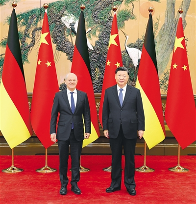 習(xí)近平指出,你是中共二十大召開后首位來訪的歐洲領(lǐng)導(dǎo)人,這也是你就任以來首次訪華。相信訪問將增進雙方了解和互信,深化各領(lǐng)域務(wù)實合作,為下階段中德關(guān)系發(fā)展做好謀劃。