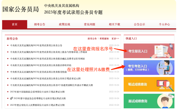 報(bào)名確認(rèn)及準(zhǔn)考證打印系統(tǒng)在國(guó)考專(zhuān)題頁(yè)中的【考生考務(wù)入口】,和之前報(bào)名的【考生報(bào)名入口】不是一個(gè)入口!別進(jìn)錯(cuò)!
