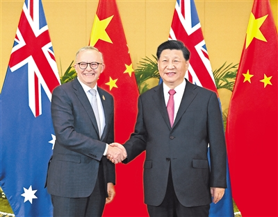 習(xí)近平指出,中澳關(guān)系曾長期走在中國同發(fā)達國家關(guān)系前列,值得雙方珍惜。過去幾年,中澳關(guān)系遇到困難,這是我們不愿看到的。中澳兩國同為亞太地區(qū)重要國家,應(yīng)該改善、維護、發(fā)展好兩國關(guān)系,這不僅符合兩國人民根本利益,也有利于促進亞太地區(qū)和世界和平與發(fā)展。