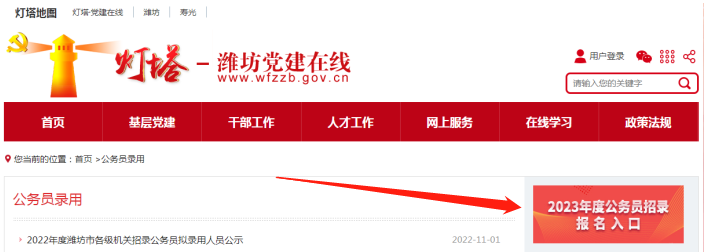 它來(lái)了!2023年山東省考終于要來(lái)了!今日,燈塔-濰坊黨建在線公務(wù)員錄用專題進(jìn)行測(cè)試,上線了2023年省考報(bào)名入口!如下: