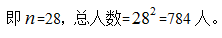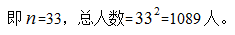 【答案】C【解析】最外層人數(shù)為128人,即最外層每邊人數(shù)×4-4=128,計算可知最外層每邊人數(shù)=33,