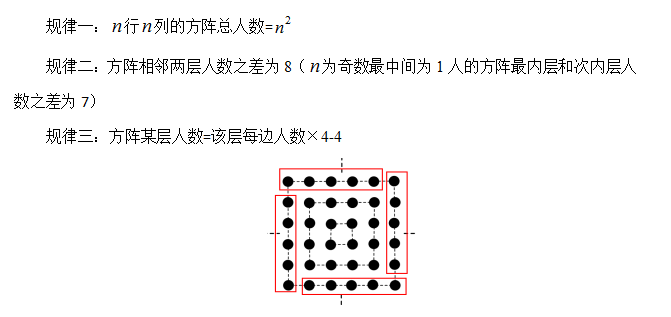 規(guī)律一:方陣相鄰兩層人數(shù)之差為8