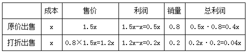 例題:服裝店買進一批童裝,按每套獲利50%定價賣出這批童裝的80%后,按定價的八折將剩下的童裝全部賣出,總利潤比預期減少了390元。問服裝店買進這批童裝花了多少元?( )