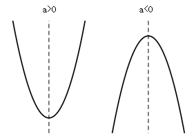 由圖像可知a>0時,開口向上,在對稱軸處y取最小值;a<0時,開口向下,在對稱軸處y取最大值。如下圖: