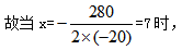 方法二:由上式,化簡后可得:由上總利潤y=(20-x)×(120+20x),令y=0,可得x=20或者x=-6,則函數(shù)y的對稱軸為