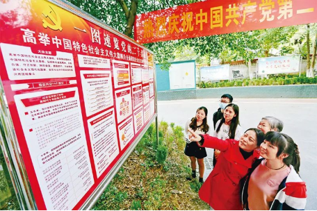 黨旗光輝領(lǐng)航向,與時俱進向未來。新征程上,在以習近平同志為核心的黨中央堅強領(lǐng)導下,我們黨必將更加自覺地學習黨章、遵守黨章、貫徹黨章、維護黨章,不斷開辟新天地、走向新勝利。