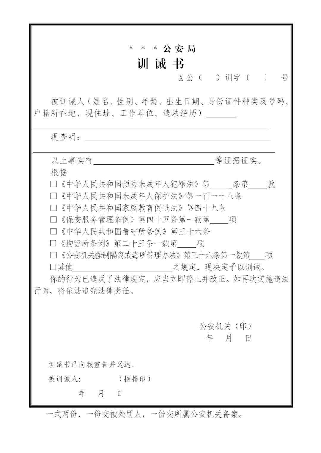 公安機(jī)關(guān)訓(xùn)誡法律依據(jù)及《訓(xùn)誡書(shū)》式樣(最新)