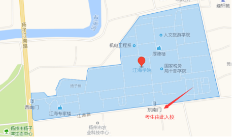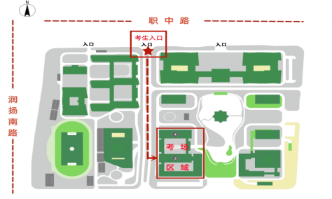 友情提示:請(qǐng)從揚(yáng)州市職業(yè)大學(xué)西門(國展路,國展中心對(duì)面)進(jìn)入,由于西門離考場有一段距離,請(qǐng)考生盡量提早到達(dá)考場所在教學(xué)樓,可乘坐101路公交車。