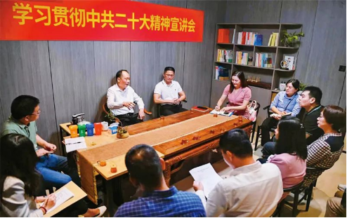 黨的二十大報(bào)告強(qiáng)調(diào)堅(jiān)持貫徹新時代黨解決臺灣問題的總體方略,為做好新時代對臺工作提供了根本遵循和行動指南。圖為2022年11月16日臺盟福建省委會的宣講員在向盟員宣講中共二十大精神。王鴻燕/攝