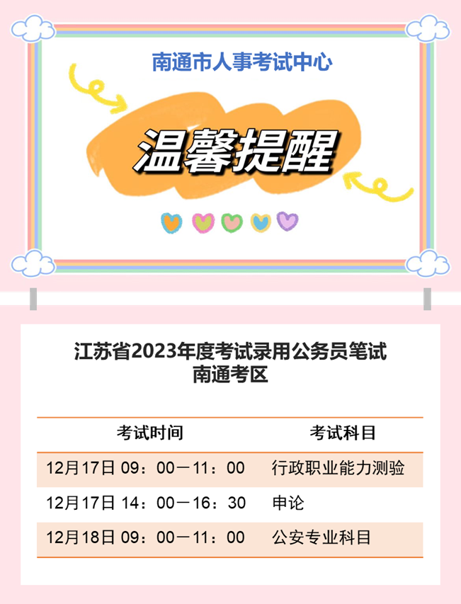 你最關(guān)心的疫情防控它來了!在通參加筆試的考生須按《江蘇省2023年度考試錄用公務(wù)員筆試考生新冠肺炎疫情防控告知書(2022年12月9日更新)》、《在通參加江蘇省2023年度考試錄用公務(wù)員筆試考生新冠肺炎疫情防控補充告知(2022年12月9日發(fā)布)》相關(guān)要求做好準(zhǔn)備,考試當(dāng)天需要: