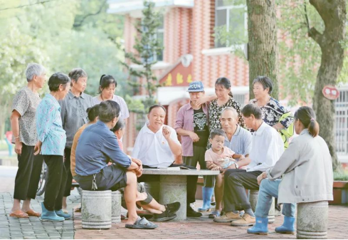 在習(xí)近平法治思想指引下,新時(shí)代十年我們黨在全面依法治國實(shí)踐中切實(shí)貫徹落實(shí)法治為民宗旨,頒布實(shí)施民法典等關(guān)系人民群眾切身利益的法律法規(guī),不斷以法治之力增進(jìn)人民福祉,保障人民安居樂業(yè)。圖為2021年8月17日,江西省蘆溪縣宣風(fēng)鎮(zhèn)珠亭村人民調(diào)解員陽昌紹(中),為珠亭村的百姓宣講民法典知識(shí)。新華社記者胡晨歡/攝