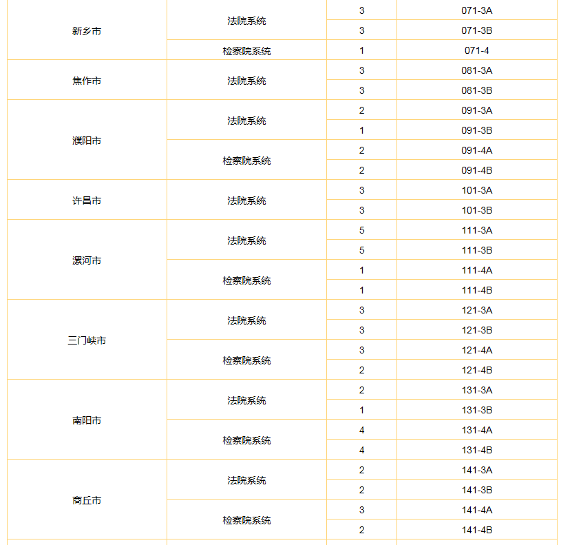 2023年河南選調(diào)生考試法檢專項名額分配及志愿代碼表
