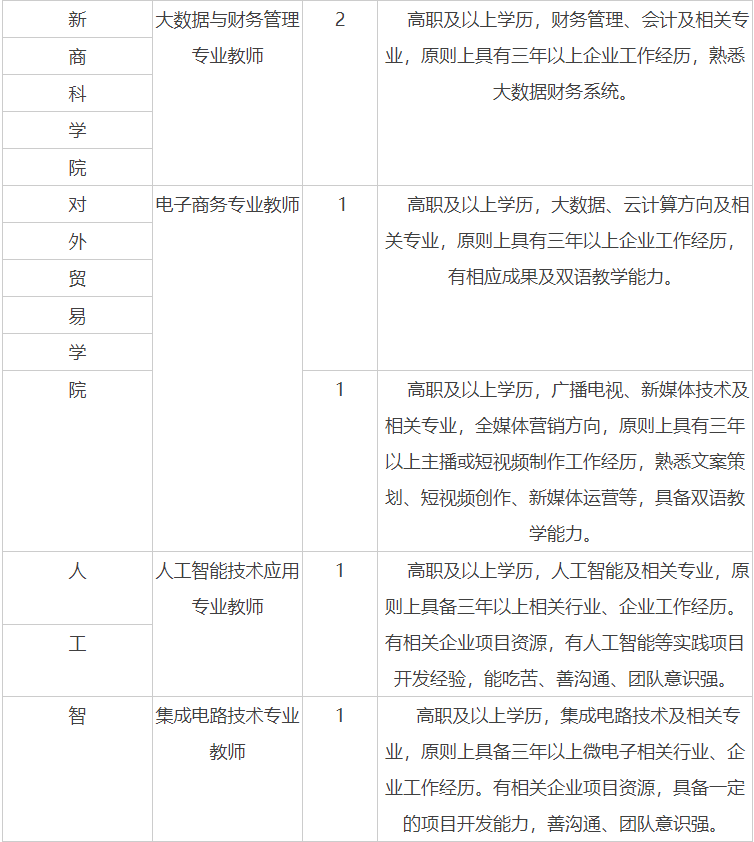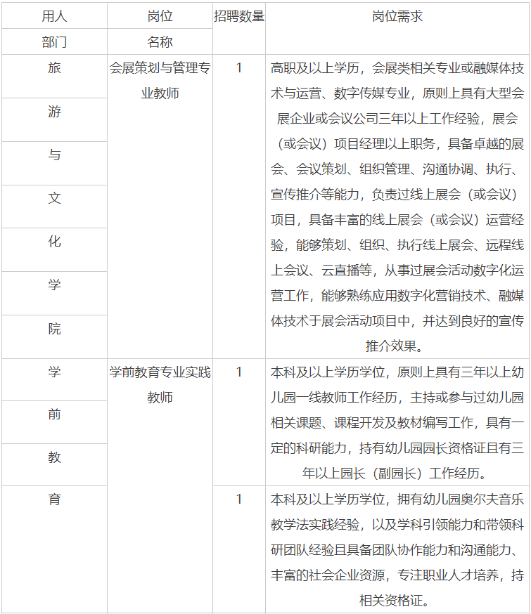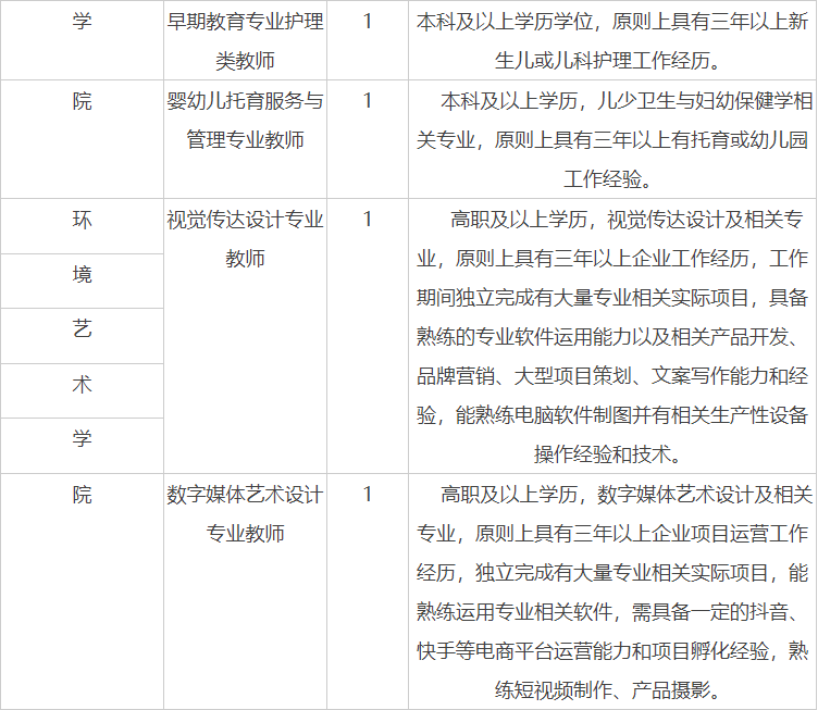 本次以人事代理形式招聘人員,按照《陜西職業(yè)技術學院人事代理辦法》進行聘用管理。博士按照《陜西職業(yè)技術學院高層次(技能)人才管理辦法》執(zhí)行,不占招聘計劃數(shù)。