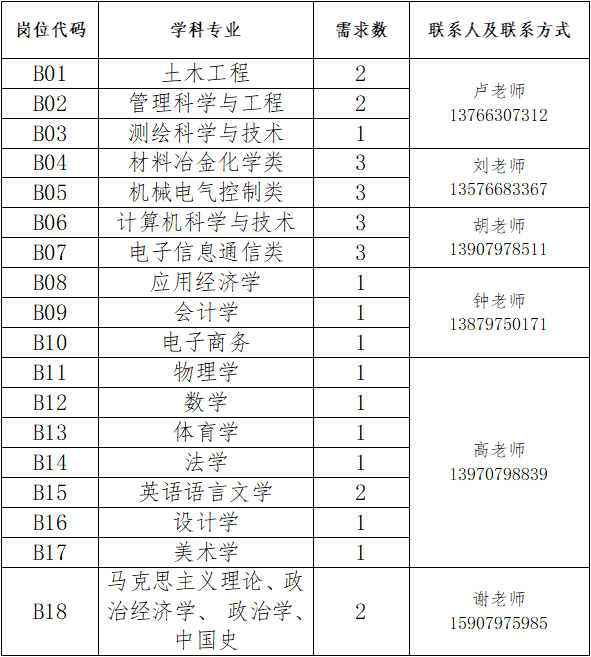 聯(lián)系地址:江西省贛州市客家大道156號——贛南科技學(xué)院組織人事部(崇善樓921室)。