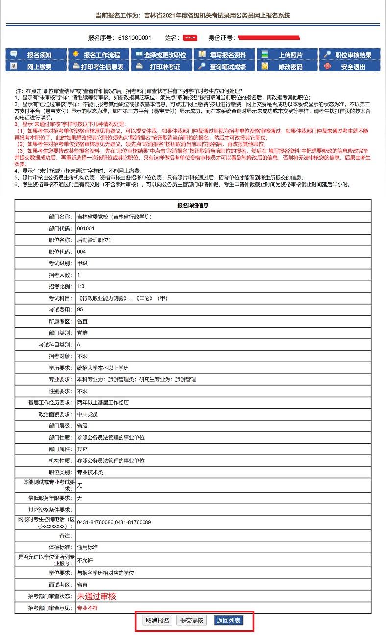 注:復(fù)核不通過將不允許重新選擇該職位,只可選擇其他職位。
