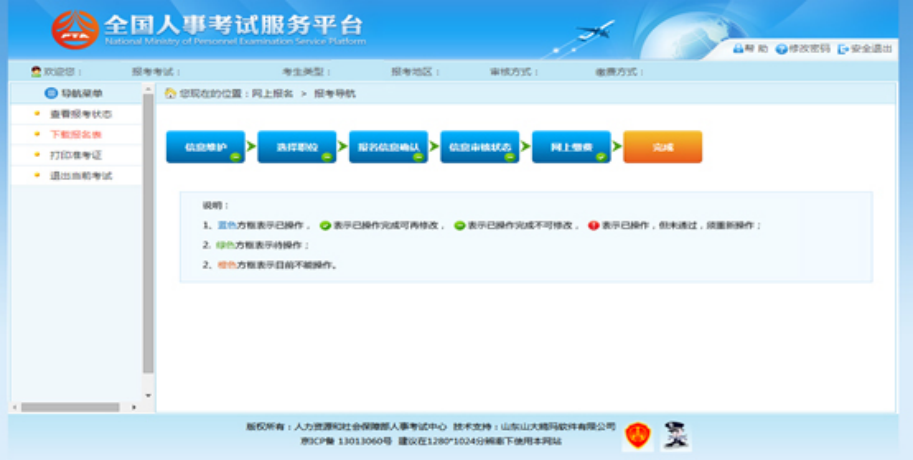 通過點擊系統(tǒng)導(dǎo)航菜單的“查看報考狀態(tài)”選項,可進入查看狀態(tài)頁面,如下圖所示: