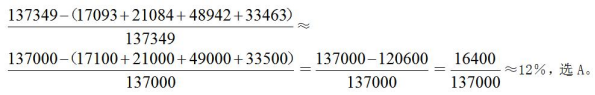 【答案】B【解析】兩數(shù)的第三位有效數(shù)字分別為“8,9”,滿足全進,取舍為400×2.8%=11.2,故選擇最接近的B選項。