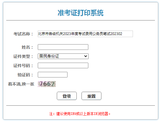 點擊進入:2023年北京公務(wù)員考試準考證打印入口(2月7日10:00至2月12日15:00)