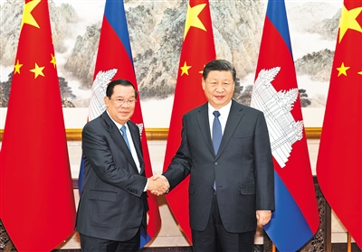 習(xí)近平強(qiáng)調(diào),中方堅定支持柬埔寨人民自主選擇符合本國國情的發(fā)展道路,堅定支持柬埔寨維護(hù)國家主權(quán)和安全,堅定支持柬埔寨平穩(wěn)推進(jìn)國內(nèi)重大政治議程和經(jīng)濟(jì)社會發(fā)展,堅決反對外部勢力干涉柬埔寨內(nèi)政。中方把柬埔寨作為周邊外交重點方向,始終從全局和戰(zhàn)略高度規(guī)劃和推進(jìn)中柬各領(lǐng)域合作,愿在以中國式現(xiàn)代化全面推進(jìn)中華民族偉大復(fù)興進(jìn)程中,同柬方共享機(jī)遇、共謀合作、共促發(fā)展,攜手構(gòu)建高質(zhì)量、高水平、高標(biāo)準(zhǔn)的新時代中柬命運(yùn)共同體,為兩國人民帶來更多福祉,為地區(qū)和平穩(wěn)定發(fā)展貢獻(xiàn)更多正能量。