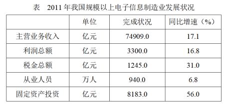 2011年,我國規(guī)模以上電子信息制造業(yè)人均創(chuàng)造利潤約比上年增加:( )