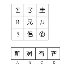 題:邊四個(gè)圖形中,只有一個(gè)是由左邊的四個(gè)圖形拼合(只能通過(guò)上、下、左、右平移)而成的,請(qǐng)把它找出來(lái):( )