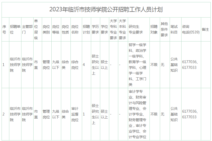 附件:2023年臨沂市技師學(xué)院公開招聘工作人員計(jì)劃