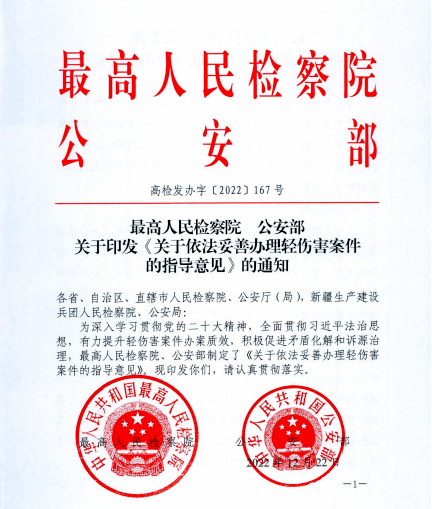 最高檢公安部發(fā)布:關(guān)于依法妥善辦理輕傷害案件的指導(dǎo)意見