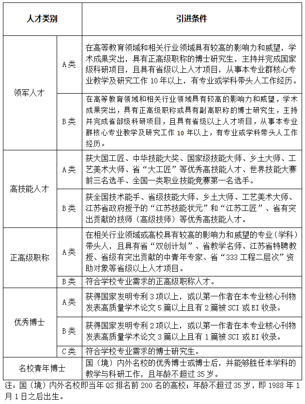 4.年齡條件:具有正高級專業(yè)技術(shù)職稱年齡不超過50周歲,即1973年1月1日以后出生,且具有本科及以上學歷;博士研究生(含學歷和學位)年齡不超過40周歲,即1983年1月1日之后出生;具有相應(yīng)人才稱號的高技能人才須為碩士研究生及以上,同時為副高級以上職稱且年齡不超過45周歲,即1978年1月1日之后出生。
