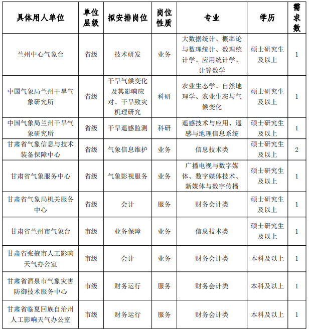 甘肅省氣象局2023年事業(yè)單位公開招聘應(yīng)屆高校畢業(yè)生公告(第二階段)
