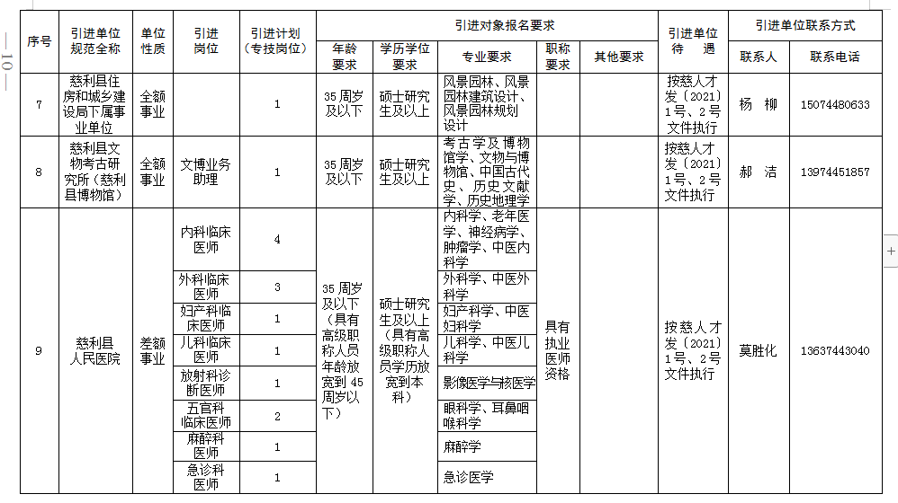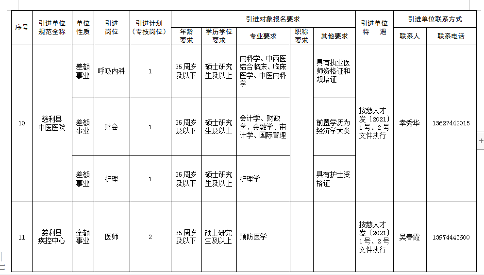 慈利縣2023年公開引進急需緊缺人才公告(第一批)