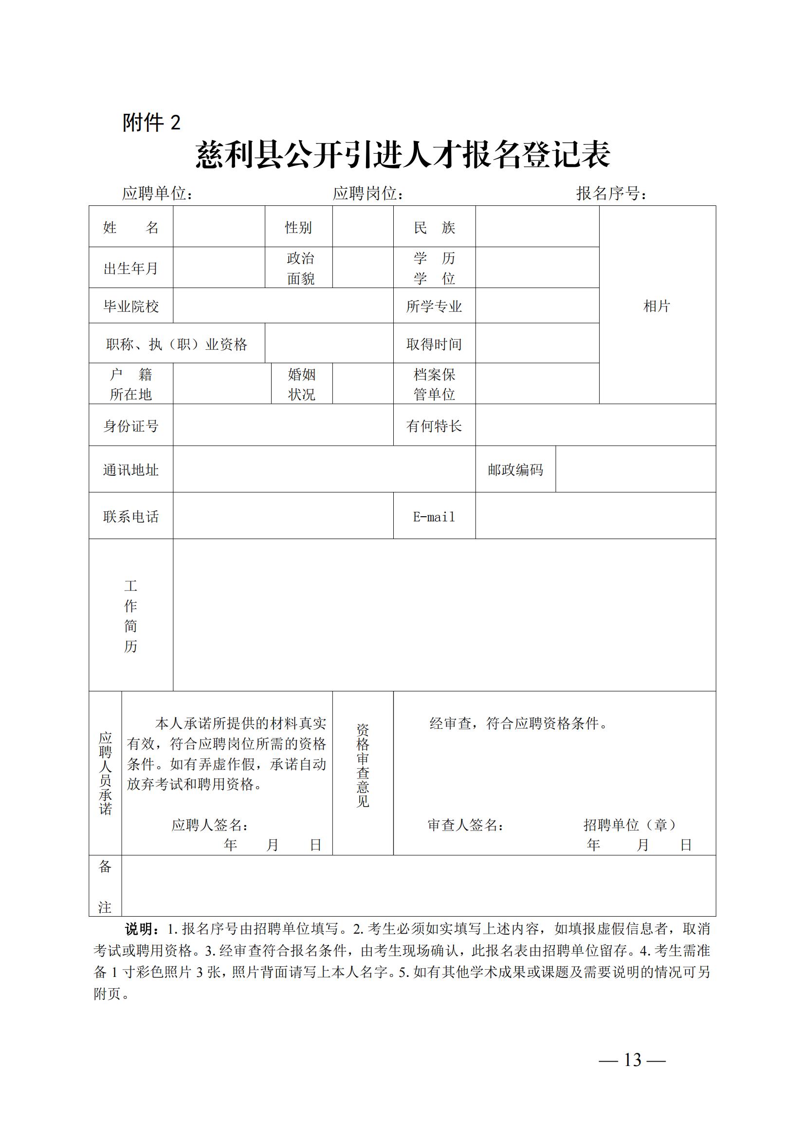 1.《慈利縣公開引進人才報名登記表》1份(附件2);