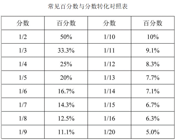 ②直除法:分數(shù)比較時,通過觀察答案選項或被比較數(shù)據(jù),若其差距較大,則在分數(shù)值量級一致的情況下通過直除商首位或首兩位來求得結(jié)果或進行相應的比較。