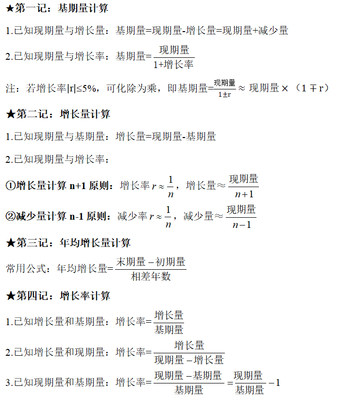 ②現(xiàn)期量與增長率一大一小,一般情況下,比較現(xiàn)期量×增長率,乘積大的增長量大。