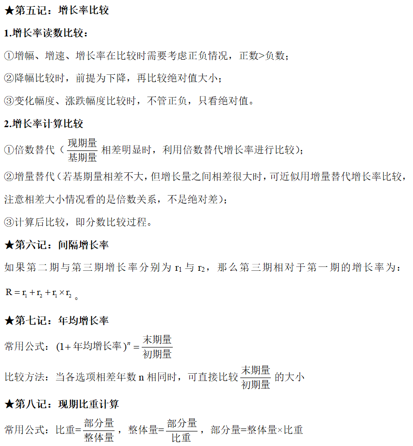 ①若部分增長率a>整體增長率b,則現(xiàn)期比重>基期比重,即比重上升;